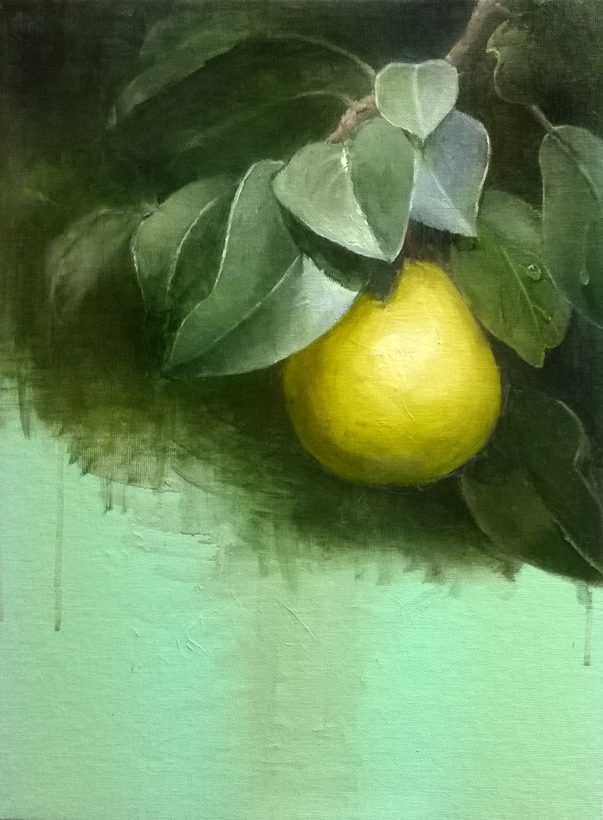 Now she lifts her pale forearms and thoroughly washes her face.