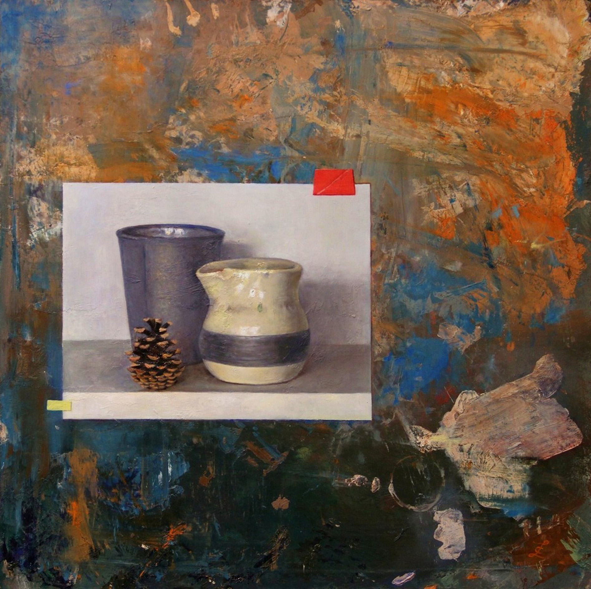 1. Thank you for your comment. The abstract background come first and then I set up a still life according to the feeling it stirs.